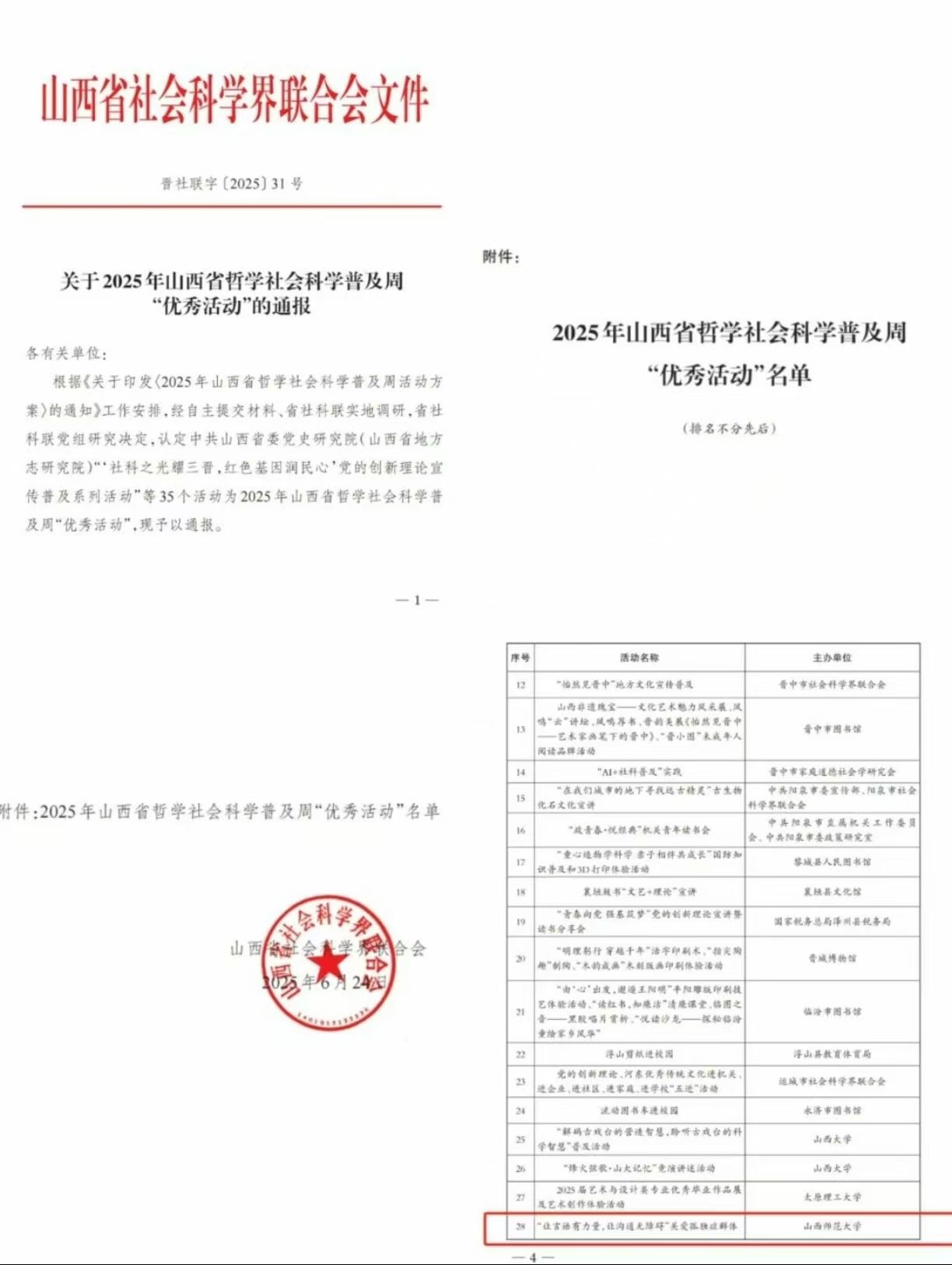 近日,山西省哲学社会科学联合会公布了2025年山西省哲学社会科学普及周“优秀活动”,51直播