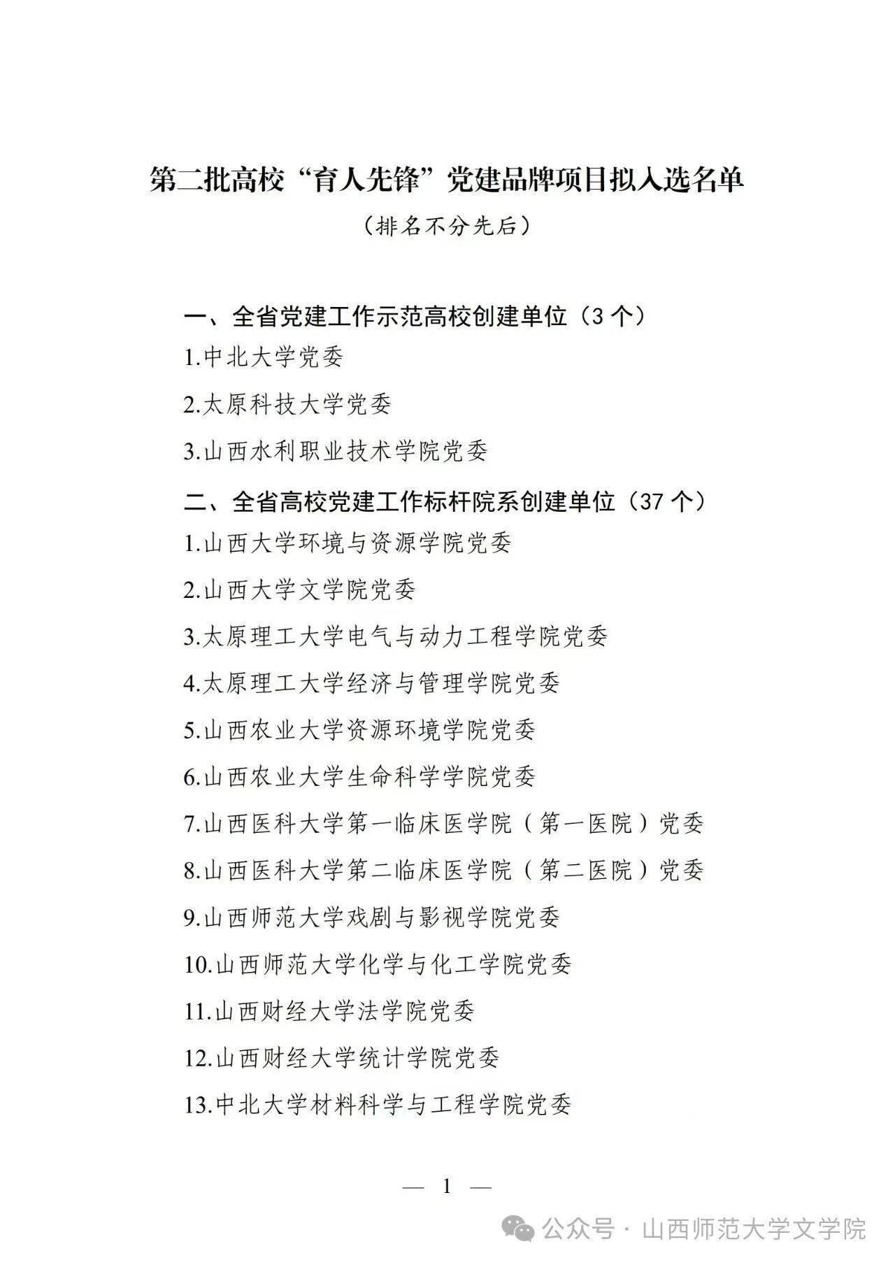 近日,山西省教育厅公布第二批高校“育人先锋”党建品牌项目拟入选名单,51直播