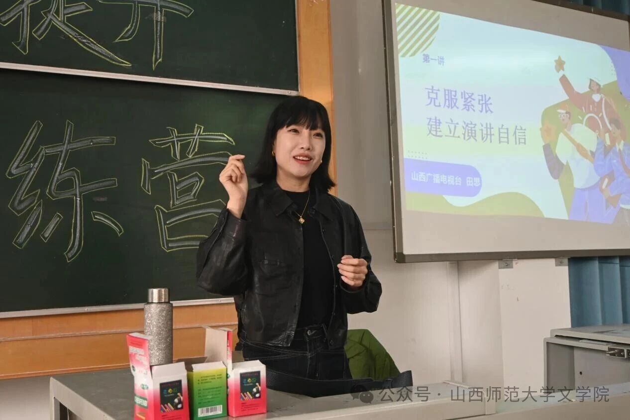 大学生演讲俱乐部在南区5108教室举办第一期“演讲能力提升”训练营。本期活动特邀山西广播电视台交通广播节目中心主持人、记者田思担任主讲,学院部分同学到场参加。