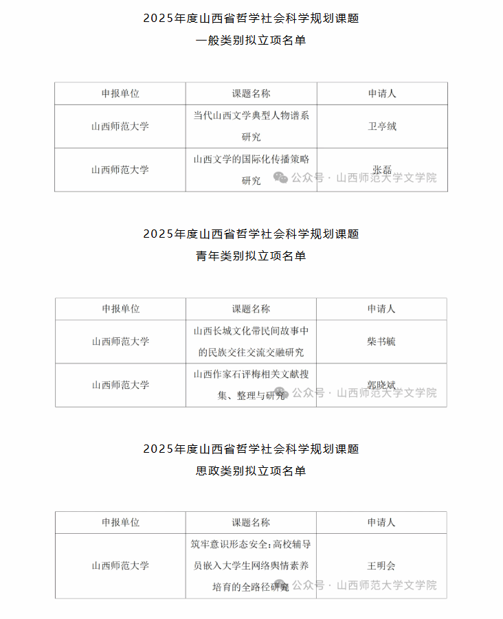 近日,山西省委宣传部公示了2025年度山西省哲学社会科学规划课题拟立项名单,51直播