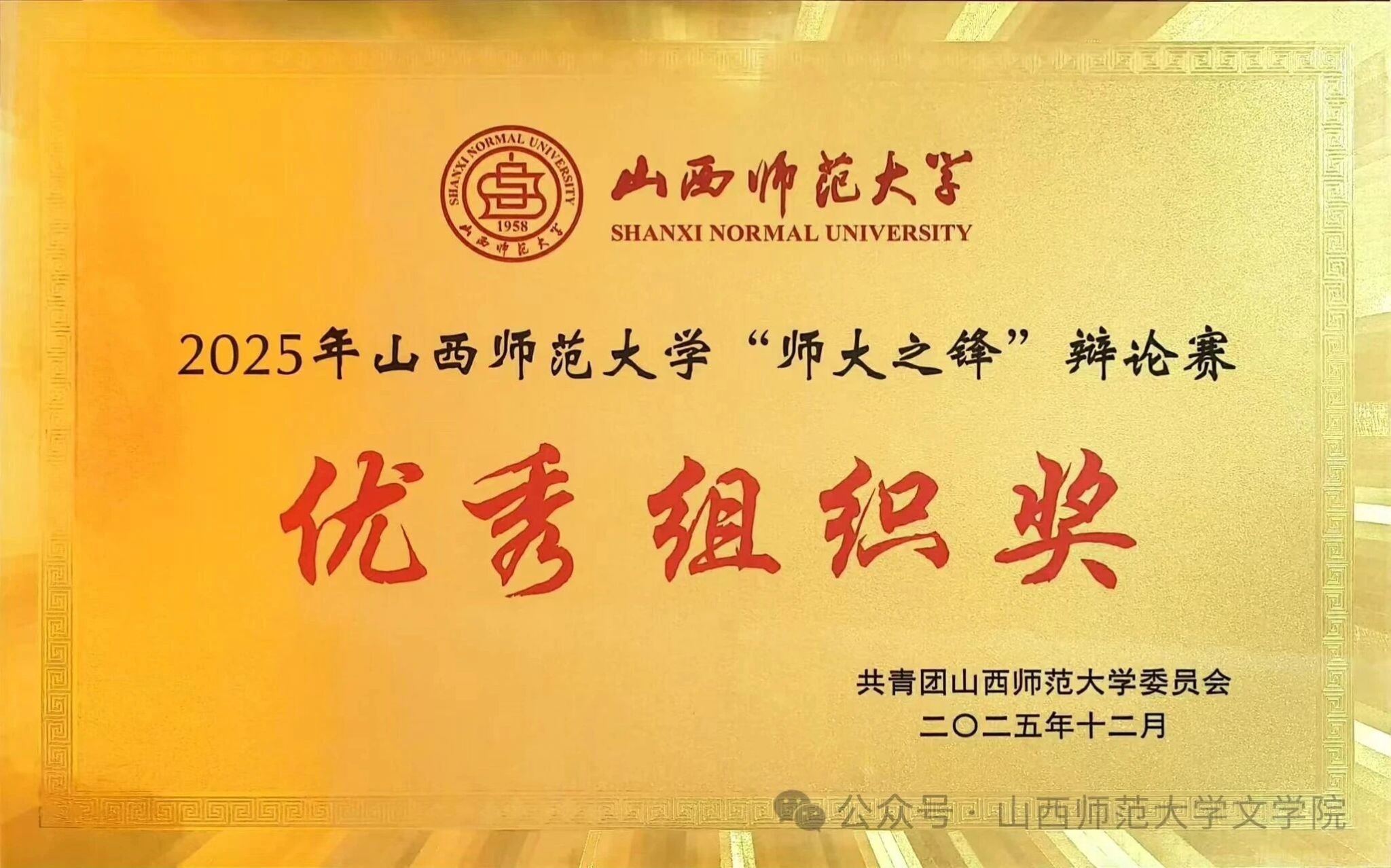 辩论队在北区毓秀学堂参加山西师范大学“师大之锋”辩论赛,凭借出色的团队协作和扎实的思辨功底,荣获“优秀组织奖”。