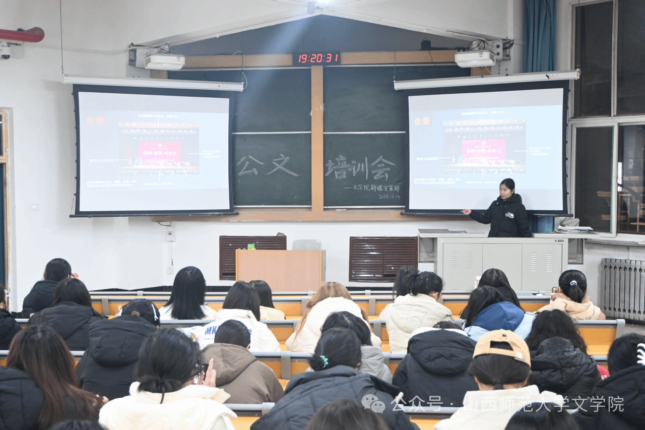 于南区3106教室举办“以文立事,以影纪实”公文写作与摄影技能培训会。本次培训会由23级学生赵思阳和24级学生王皎皎担任主讲,学院各部门、社团、项目组众多同学积极参加。