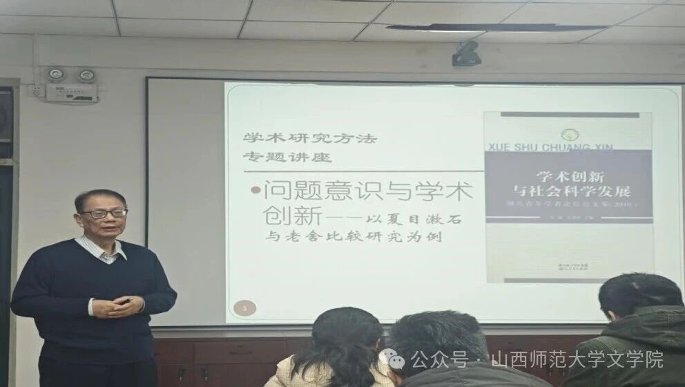 2201会议室作题为“问题意识与学术创新——以夏目漱石与老舍比较研究为例”的学术讲座。讲座由高超老师主持,部分研究生到场聆听。